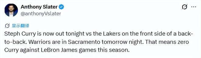 詹姆斯因坐骨神经痛,缺席了赛季揭幕战双方的首次对决;库里则因右膝旧伤反复,错过了此前两场对阵湖人的比赛。为稳妥安排复出节奏,勇士决定让库里缺席本次背靠背赛程的首场(即本赛季对阵湖人的收官战),让他休战一场。